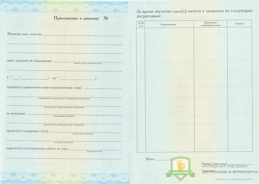 Прибрести диплом о профессиональной переподготовке 2013 - 2015 год вы можете в компании «ОК-Дипломы». Работаем на профильном рынке более 20 лет, предлагая клиентам высококачественный сервис и разумные цены. У нас диплом о профессиональной переподготовке 2013 - 2015 год выполняется на оригинальном бланке Гознак, дополняется подлинными подписями и печатями.